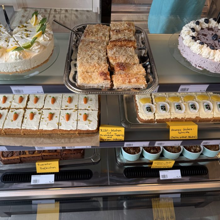 Diese selbstgebackenen Kuchen und Torten dürfen wir nicht außer Haus verkaufen, da wir keine Konditormeisterin oder Meister beschäftigen.